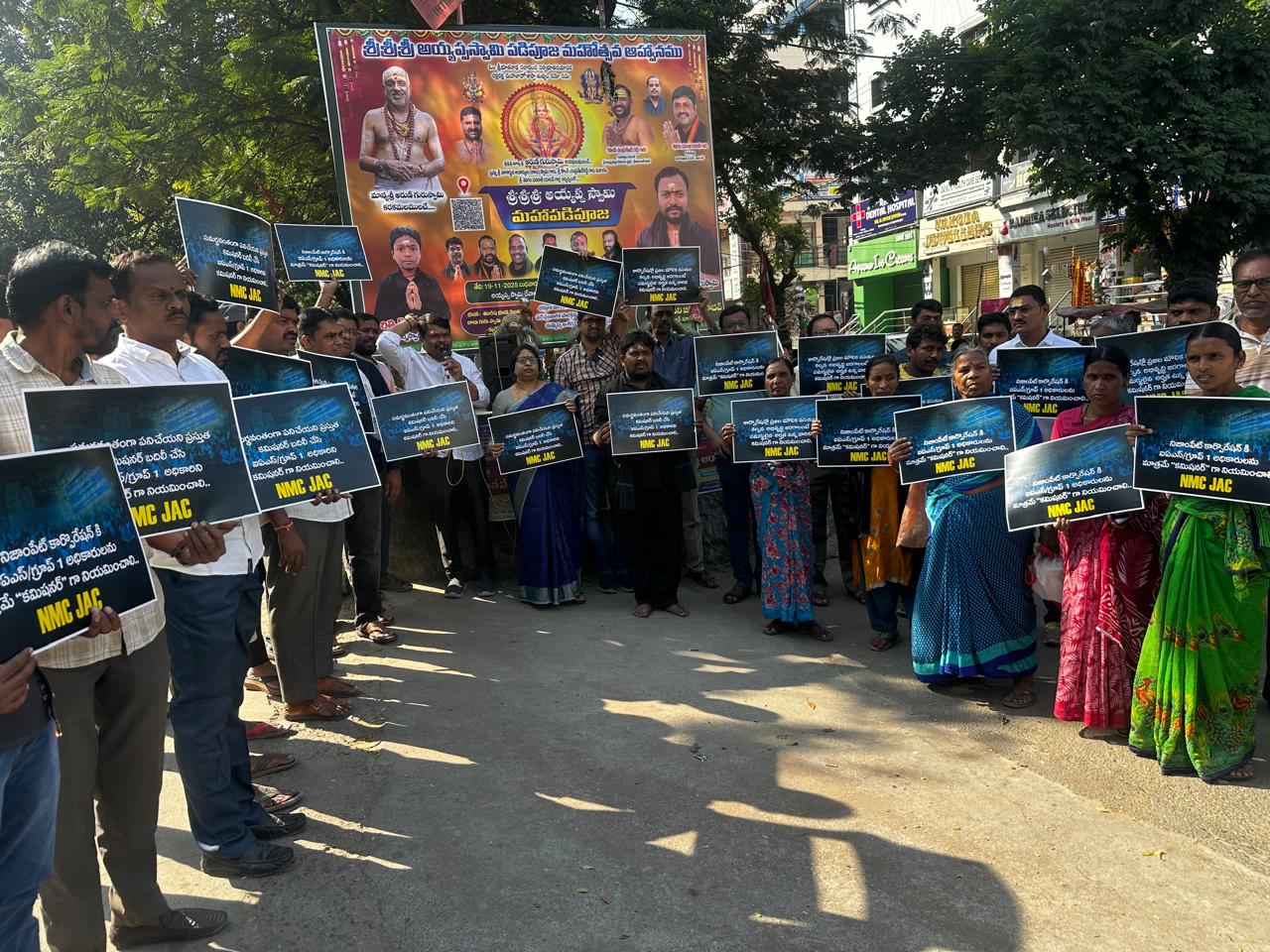 ఇది కద నిజం,హైదరాబాద్: నిజాంపేట్ మున్సిపల్ ప్రస్తుత grade 3 స్థాయి కమిషనర్ మౌలిక వసతుల కల్పనలో విఫలం, అవినీతి అక్రమాలు బంధు/వర్గ ప్రీతి, పారిశుద్ధ్యం డంపింగ్ యార్డ్, సివిల్ వర్క్, టౌన్ ప్లానింగ్, ఆర్థిక నిధుల దుర్వినియోగం, ప్రజలతో సంబంధాలు ఫిర్యాదులపై ఉదాసీనత మరియు పార్కులు రోడ్ల ఆక్రమణలు వంటి అంశాల్లో విఫలమైన ప్రస్తుత కమిషనర్ సాబీర్ అలీని బదిలీ చేసి గ్రూప్ వన్/ఐఏఎస్ అధికారిని కార్పొరేషన్ కి కమిషనర్ గా నియమించి, కార్పొరేషన్ను కాపాడాలని ధర్నా మరియు కోతులకి వినతిపత్రం నిజాంపేట్ కార్పొరేషన్ చైన్ యాక్షన్ కమిటీ ఆధ్వర్యంలో ఇవ్వడం జరిగింది. ఈ సందర్భంగా నిజాంపేట్ జైన్ట్యాక్షన్ కమిటీ సభ్యులు మాట్లాడుతూ తెలంగాణ మున్సిపల్ చట్టం ప్రకారం కార్పొరేషన్ల కి కమిషనర్ గా నియమించాలంటే కనీస గ్రూప్ వన్ లేక ఐఏఎస్ అధికారులు కమిషనర్ గా నియమించాలి.